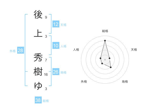 後上 秀樹ゆさんの総格は38画の4点!