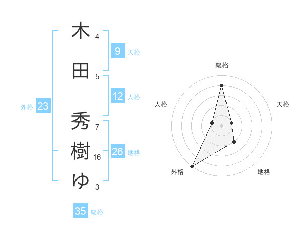木田 秀樹ゆさんの外格は23画の5点!