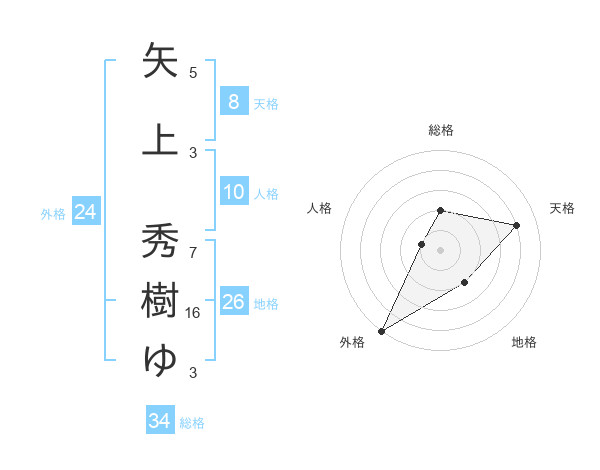 矢上 秀樹ゆさんを姓名の画数から五運を鑑定