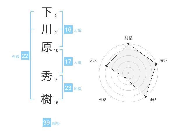 下川原 秀樹さんを姓名の画数から五運を鑑定