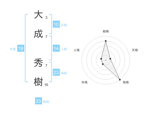 大成 秀樹さんの総格は33画の4点!