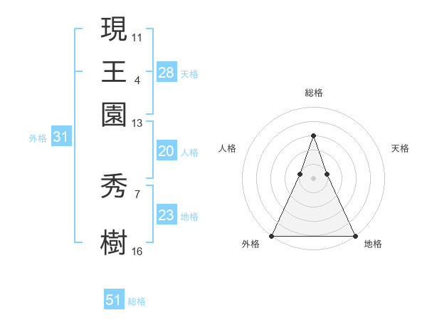 現王園 秀樹さんの総格は51画の3点!