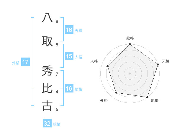 八取 秀比古さんを姓名の画数から五運を鑑定