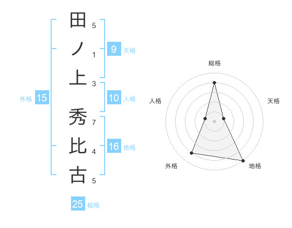 田ノ上 秀比古さんを姓名の画数から五運を鑑定