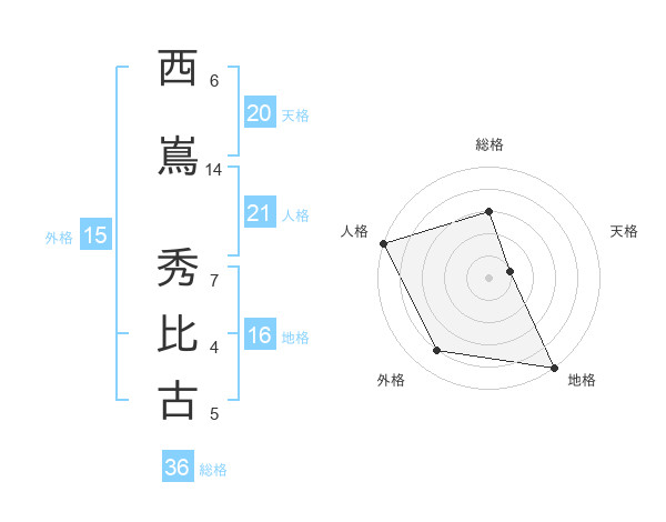 西嶌 秀比古さんを姓名の画数から五運を鑑定
