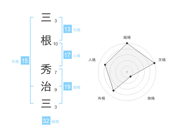 三根 秀治三さんを姓名の画数から五運を鑑定