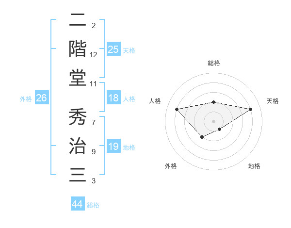 二階堂 秀治三さんを姓名の画数から五運を鑑定