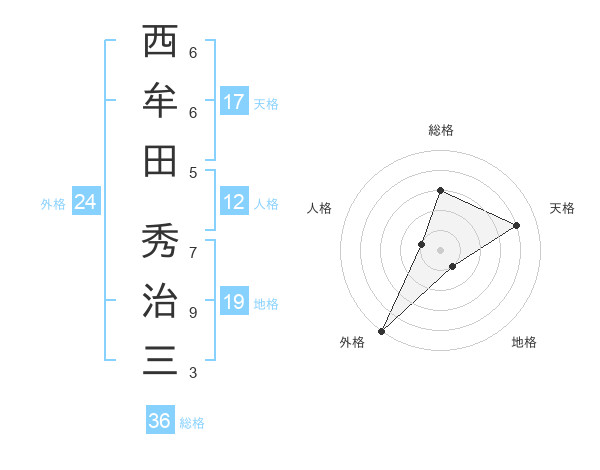 西牟田 秀治三さんを姓名の画数から五運を鑑定