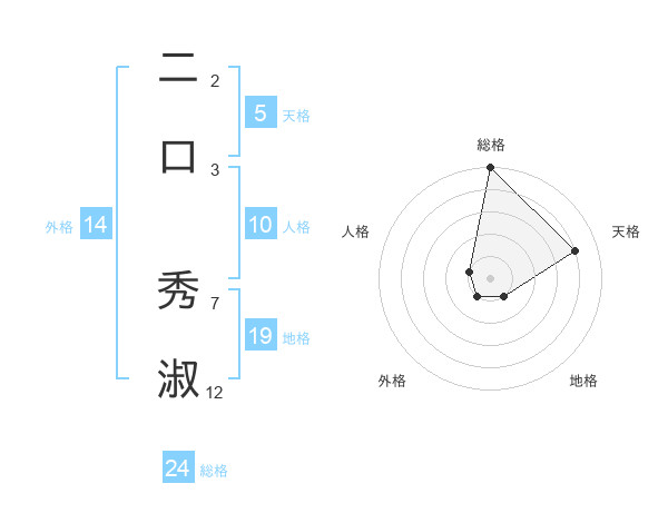 二口 秀淑さんを姓名の画数から五運を鑑定