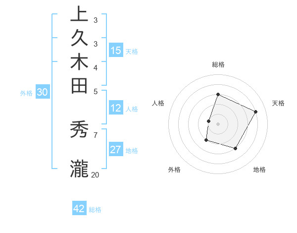 上久木田 秀瀧さんを姓名の画数から五運を鑑定