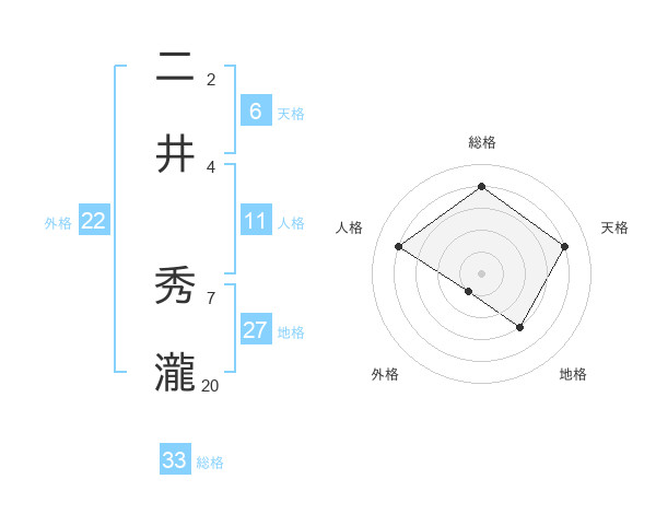 二井 秀瀧さんを姓名の画数から五運を鑑定