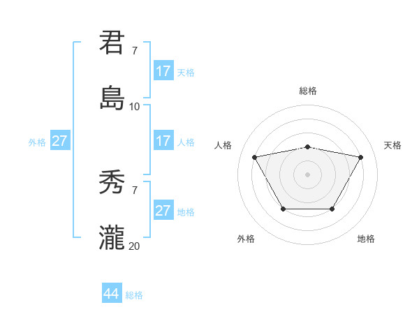 君島 秀瀧さんを姓名の画数から五運を鑑定