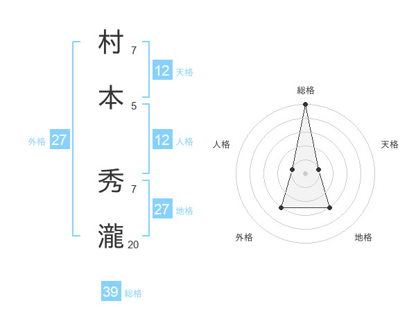 村本 秀瀧さんの総格は39画の5点!