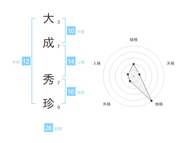 大成 秀珍さんを姓名の画数から五運を鑑定