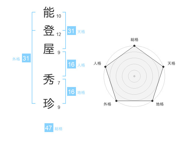 能登屋 秀珍さんを姓名の画数から五運を鑑定