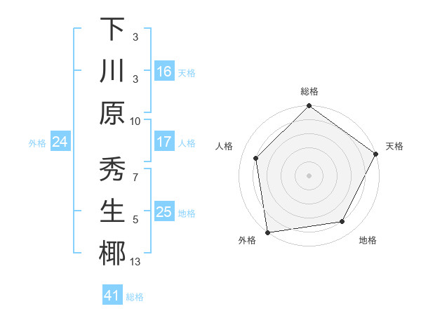 下川原 秀生椰さんの総格は41画の5点!