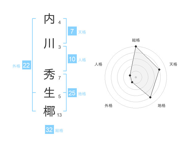 内川 秀生椰さんを姓名の画数から五運を鑑定
