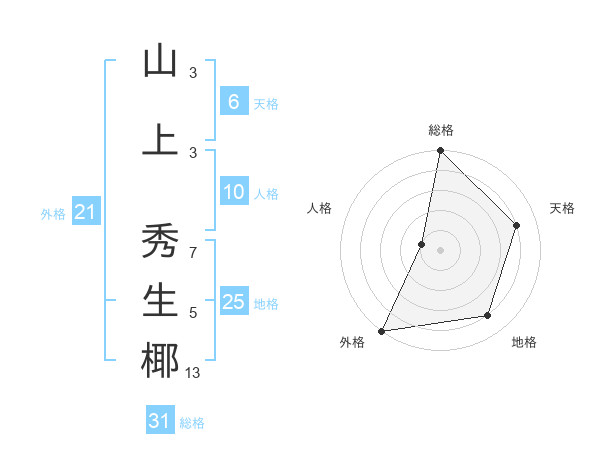 山上 秀生椰さんの総格は31画の5点