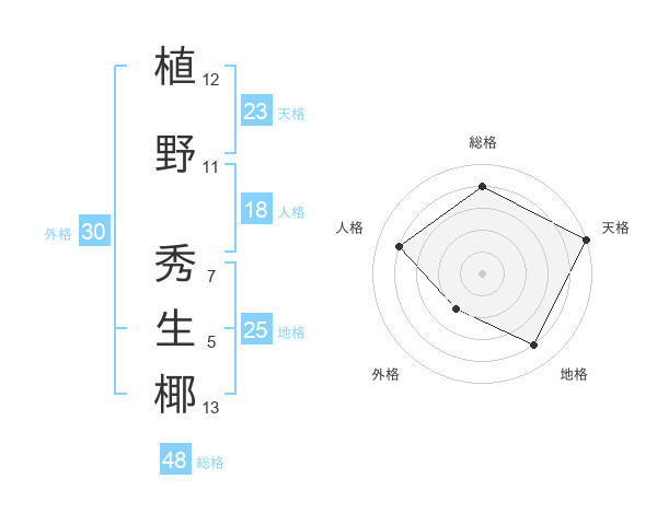 植野 秀生椰さんの天格は23画の5点!