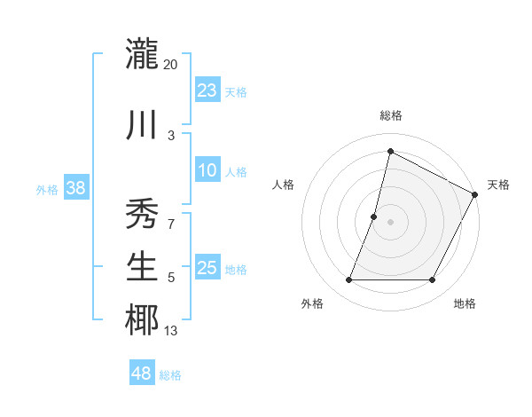 瀧川 秀生椰さんを姓名の画数から五運を鑑定