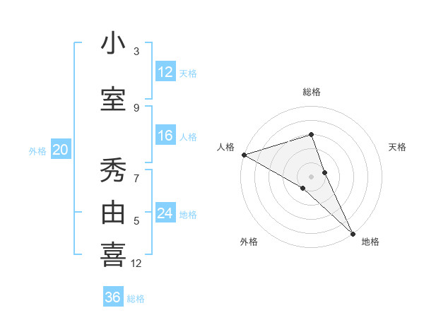 小室 秀由喜さんの天格は12画の1点!