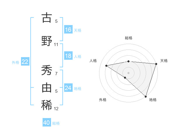 古野 秀由稀さんを姓名の画数から五運を鑑定
