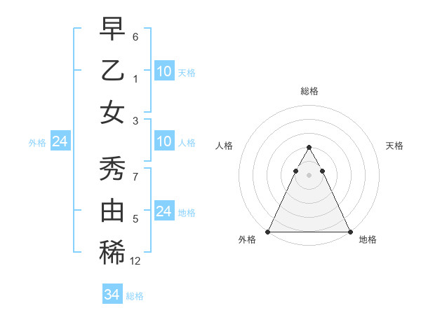 早乙女 秀由稀さんを姓名の画数から五運を鑑定