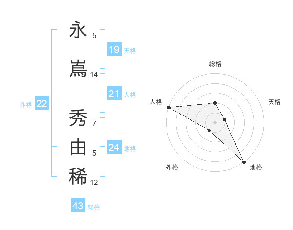 永嶌 秀由稀さんを姓名の画数から五運を鑑定