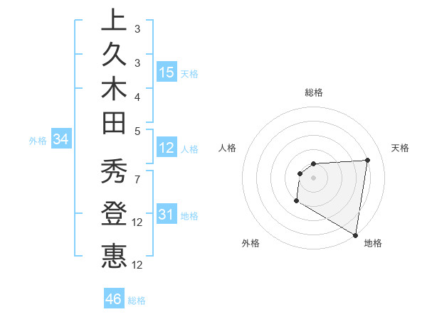 上久木田 秀登惠さんを姓名の画数から五運を鑑定