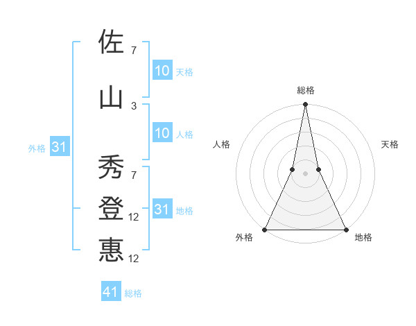 佐山 秀登惠さんを姓名の画数から五運を鑑定