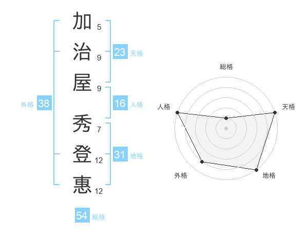 加治屋 秀登惠さんの天格は23画の5点