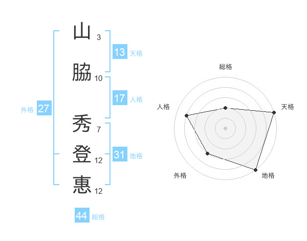 山脇 秀登惠さんを姓名の画数から五運を鑑定