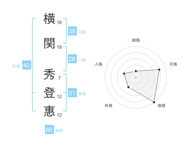 横関 秀登惠さんを姓名の画数から五運を鑑定
