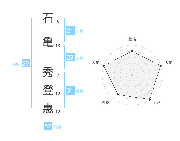 石亀 秀登惠さんの総格は52画の4点!