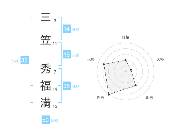 三笠 秀福満さんを姓名の画数から五運を鑑定