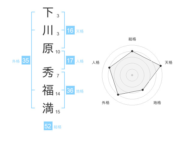 下川原 秀福満さんを姓名の画数から五運を鑑定