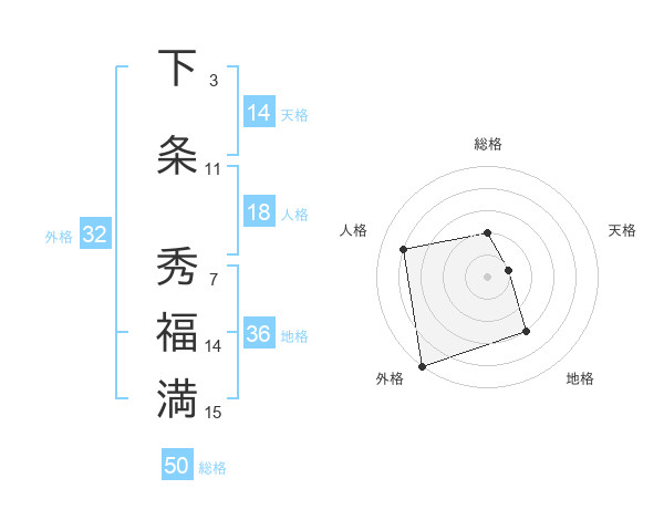 下条 秀福満さんを姓名の画数から五運を鑑定