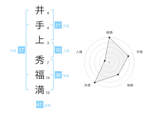 井手上 秀福満さんを姓名の画数から五運を鑑定