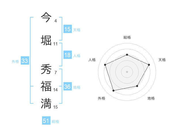 今堀 秀福満さんを姓名の画数から五運を鑑定