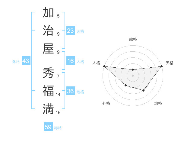 加治屋 秀福満さんを姓名の画数から五運を鑑定