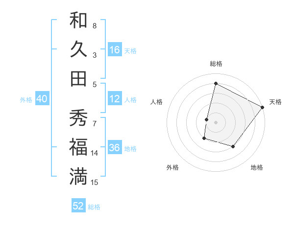 和久田 秀福満さんを姓名の画数から五運を鑑定