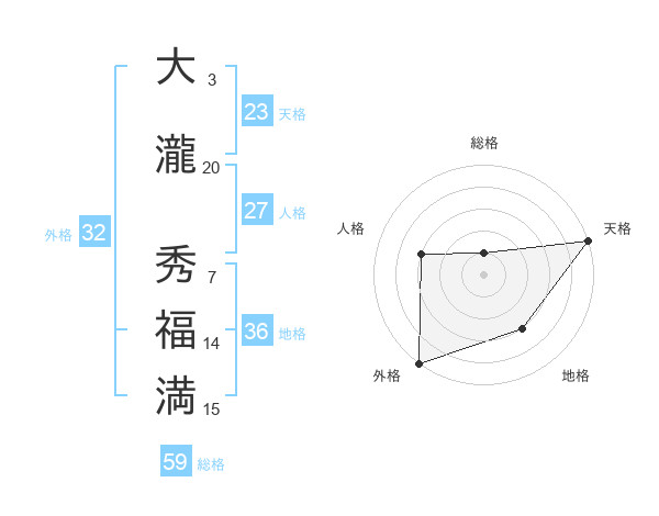 大瀧 秀福満さんを姓名の画数から五運を鑑定