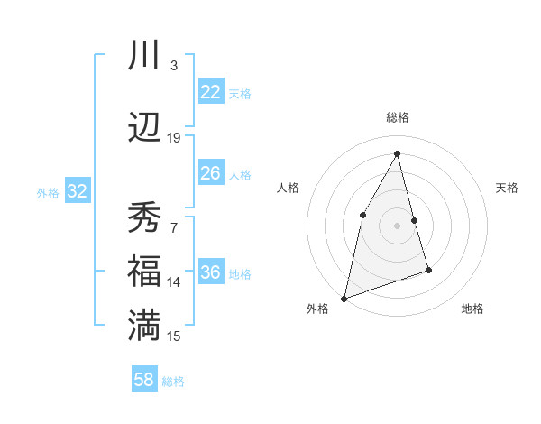 川辺 秀福満さんの総格は58画の4点!
