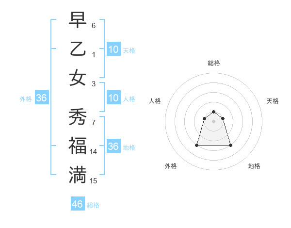 早乙女 秀福満さんを姓名の画数から五運を鑑定