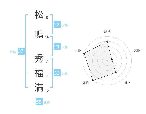 松嶋 秀福満さんを姓名の画数から五運を鑑定
