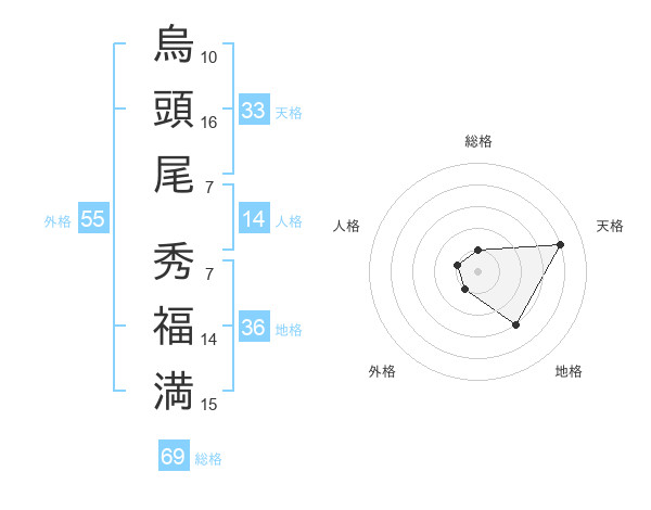 烏頭尾 秀福満さんを姓名の画数から五運を鑑定