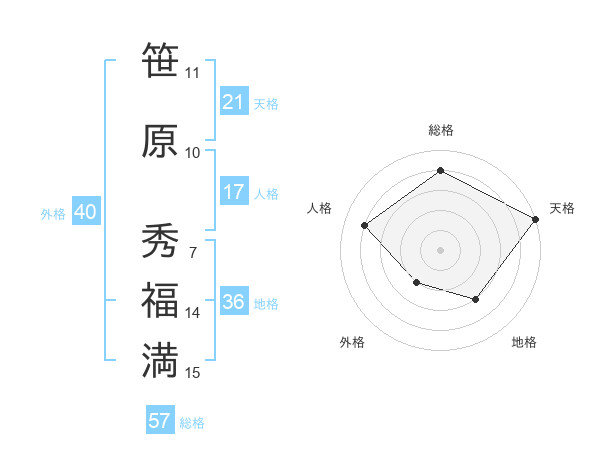 笹原 秀福満さんの総格は57画の4点!