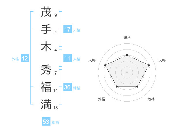 茂手木 秀福満さんを姓名の画数から五運を鑑定