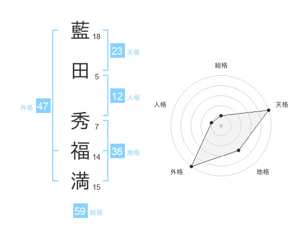 藍田 秀福満さんを姓名の画数から五運を鑑定
