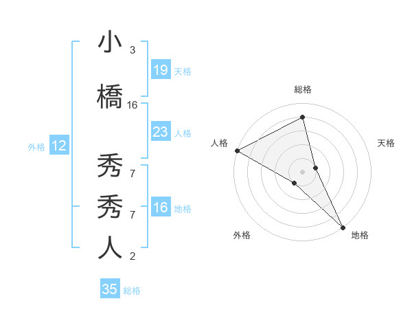 小橋 秀秀人さんを姓名の画数から五運を鑑定